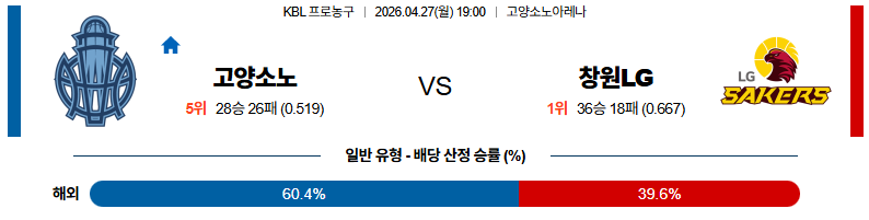 04월27일 고양소노 : 창원LG KBL 분석 및 예측 스포츠중계,스포츠분석