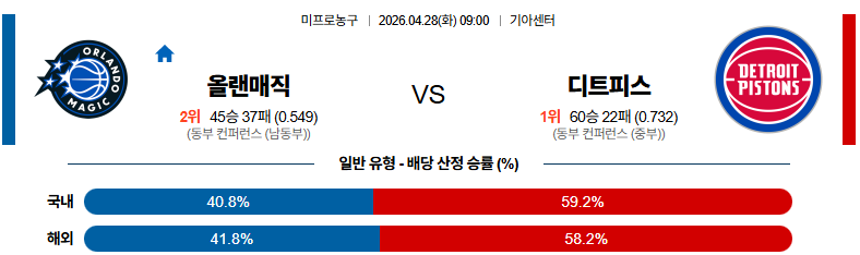 04월28일 올랜도 : 디트로이트 NBA 분석 및 예측 스포츠중계,스포츠분석