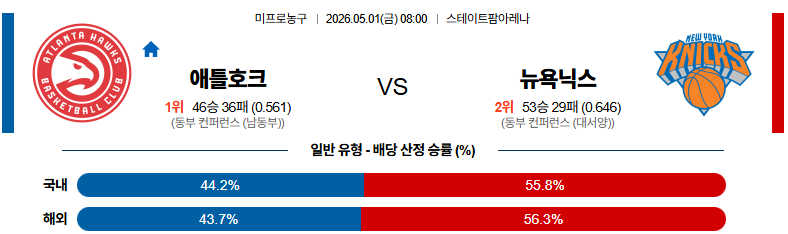 05월01일 애틀랜타 : 뉴욕 NBA 분석 및 예측 스포츠중계,스포츠분석