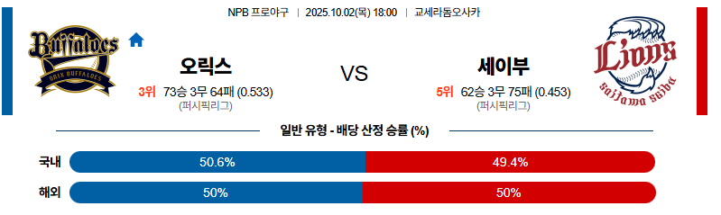 [FC LIVE] 오릭스 대 세이부 NPB 10월02일 맞대결 생중계, 스포츠중계, 스포츠분석