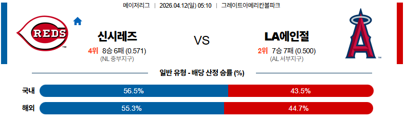 현재 04월12일 신시내티:LA에인절스 MLB 분석 및 예측 스포츠중계:스포츠무료중계