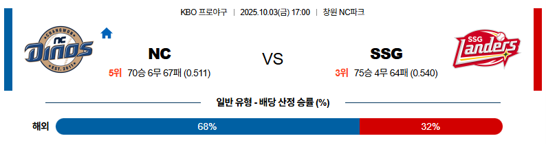이번 경기에서 NC가 승리하게 되면 5위를 확정짓게 됩니다. 하루의 휴식이 불펜 운용에 큰 도움이 될 것으로 보이며, SSG는 최선을 다할 가능성이 낮아 보입니다. 반면 NC는 선발에서 앞선 만큼 승리를 가져갈 것으로 예상됩니다.