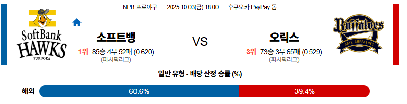 [FC LIVE] 소프트뱅크 대 오릭스 NPB 10월03일 맞대결 생중계, 스포츠중계, 스포츠분석