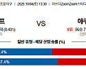 언더/오버 : 오버 - 양 팀 모두 선발의 불안과 불펜 소모가 큰 만큼 다득점 가능성이 높습니다.