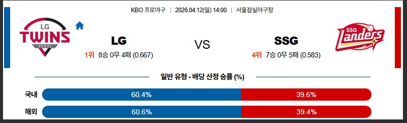 04월12일 LG:SSG KBO 분석 및 예측 스포츠중계:스포츠무료중계