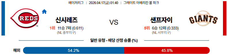 04월17일 신시내티 : 샌프란시스코 MLB 분석 및 예측 스포츠중계,스포츠분석