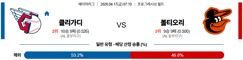 04월17일 클리블랜드 : 볼티모어 MLB 분석 및 예측 스포츠중계,스포츠분석