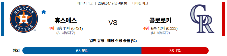 04월17일 휴스턴 : 콜로라도 MLB 분석 및 예측 스포츠중계,스포츠분석