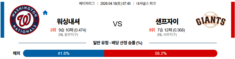 04월18일 워싱턴 : 샌프란시스코 MLB 분석 및 예측 스포츠중계,스포츠분석
