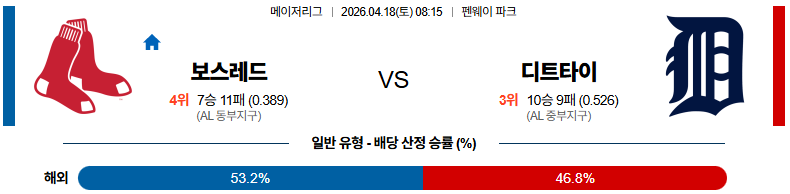 04월18일 보스턴 : 디트로이트 MLB 분석 및 예측 스포츠중계,스포츠분석