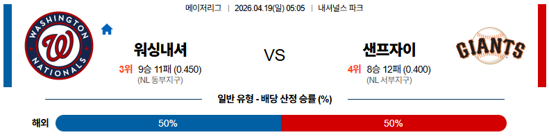 04월19일 워싱턴:샌프란시스코 MLB 분석 및 예측 스포츠중계:스포츠무료중계