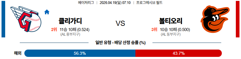 04월19일 클리블랜드:볼티모어 MLB 분석 및 예측 스포츠중계:스포츠무료중계