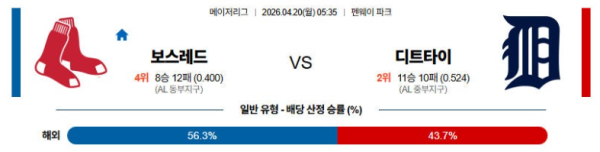 04월20일 보스턴 : 디트로이트 MLB 분석 및 예측 스포츠중계,스포츠분석