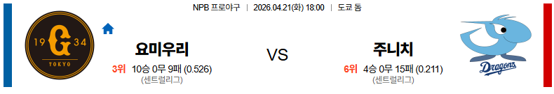 04월21일 요미우리 : 주니치 NPB 분석 및 예측 스포츠중계,스포츠분석