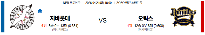 04월21일 지바롯데 : 오릭스 NPB 분석 및 예측 스포츠중계,스포츠분석