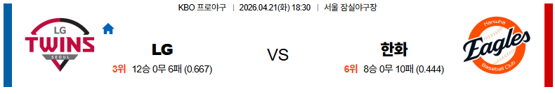 04월21일 LG : 한화 KBO 분석 및 예측 스포츠중계,스포츠분석