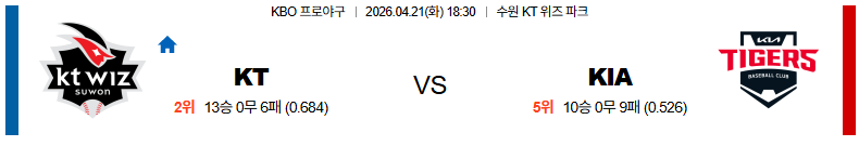 04월21일 KT : KIA KBO 분석 및 예측 스포츠중계,스포츠분석
