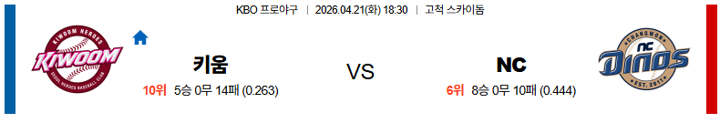 04월21일 키움 : NC KBO 분석 및 예측 스포츠중계,스포츠분석