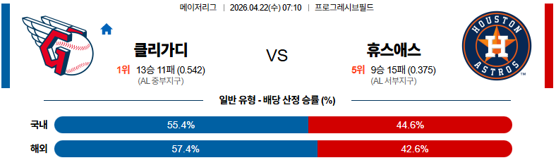04월22일 클리블랜드 : 휴스턴 MLB 분석 및 예측 스포츠중계,스포츠분석