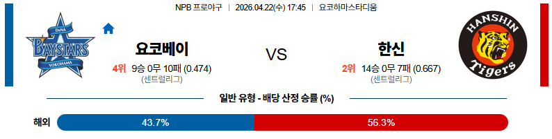 04월22일 요코하마:한신 NPB 분석 및 예측 스포츠중계:스포츠무료중계