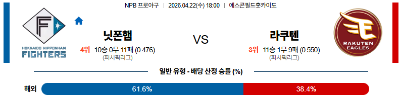 04월22일 니혼햄:라쿠텐 NPB 분석 및 예측 스포츠중계:스포츠무료중계