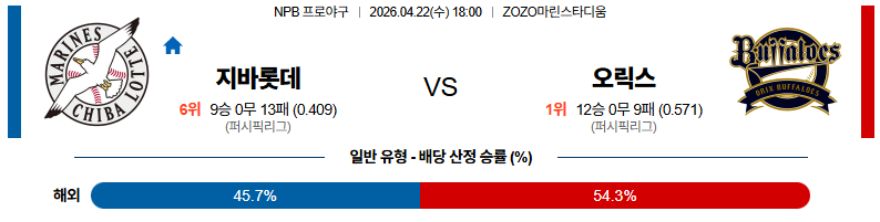 04월22일 지바롯데:오릭스 NPB 분석 및 예측 스포츠중계:스포츠무료중계