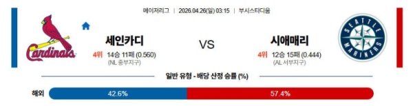 04월26일 세인트루이스 : 시애틀 MLB 분석 및 예측 스포츠중계,스포츠분석