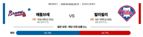 04월26일 애틀랜타 : 필라델피아 MLB 분석 및 예측 스포츠중계,스포츠분석