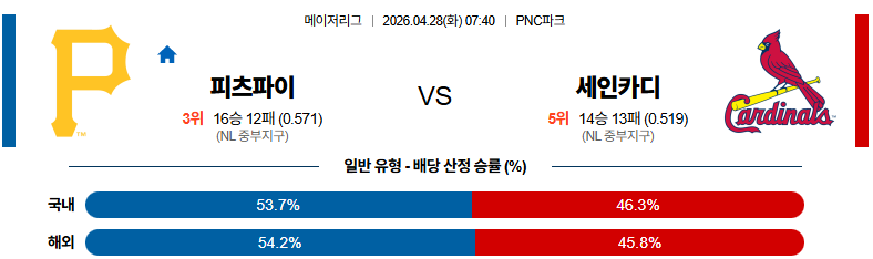 04월28일 피츠버그 : 세인트루이스 MLB 분석 및 예측 스포츠중계,스포츠분석