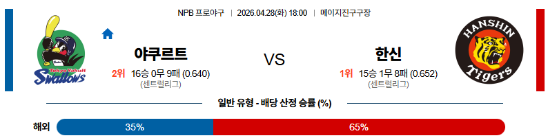 04월28일 야쿠르트 : 한신 NPB 분석 및 예측 스포츠중계,스포츠분석