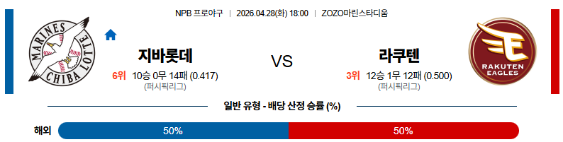 04월28일 지바롯데 : 라쿠텐 NPB 분석 및 예측 스포츠중계,스포츠분석