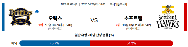 04월28일 오릭스 : 소프트뱅크 NPB 분석 및 예측 스포츠중계,스포츠분석