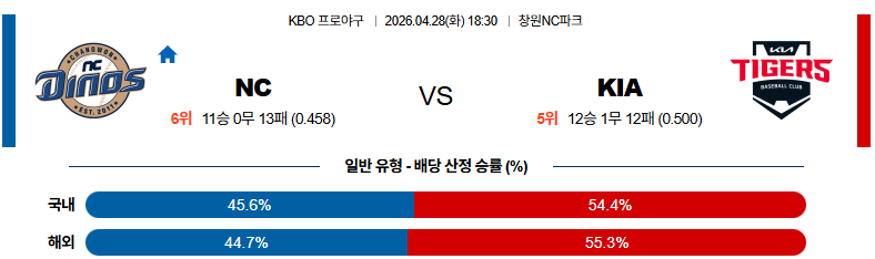 04월28일 NC : KIA KBO 분석 및 예측 스포츠중계,스포츠분석