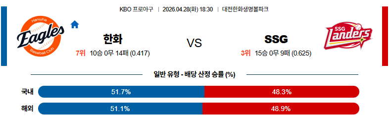 04월28일 한화 : SSG KBO 분석 및 예측 스포츠중계,스포츠분석