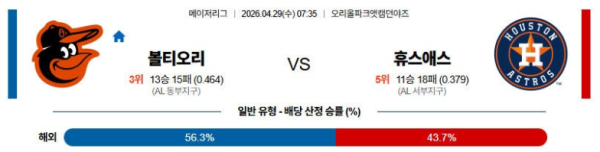 04월29일 볼티모어 : 휴스턴 MLB 분석 및 예측 스포츠중계,스포츠분석