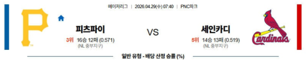 04월29일 피츠버그 : 세인트루이스 MLB 분석 및 예측 스포츠중계,스포츠분석