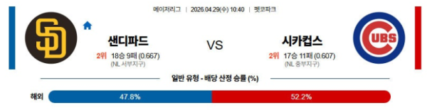 04월29일 샌디에이고 : 시카고C MLB 분석 및 예측 스포츠중계,스포츠분석