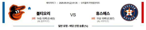 05월01일 볼티모어 : 휴스턴 MLB 분석 및 예측 스포츠중계,스포츠분석