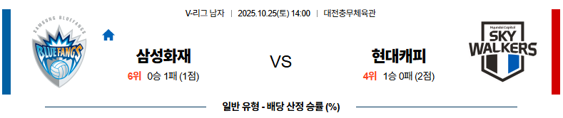 삼성화재 대 현대캐피탈 V리그 10월25일 맞대결 생중계, 스포츠중계, 스포츠분석