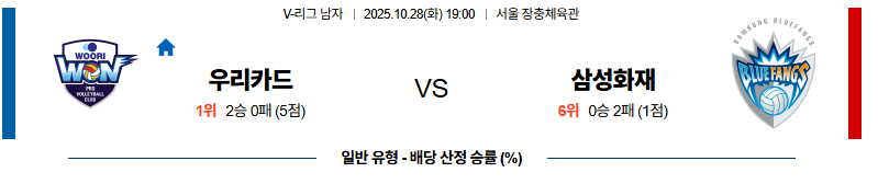 10월28일 우리카드:삼성화재 V리그 분석 및 예측 스포츠중계:스포츠무료중계