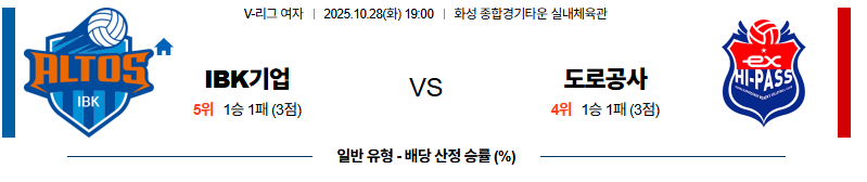 10월28일 기업은행:한국도로공사 V리그(여) 분석 및 예측 스포츠중계:스포츠무료중계