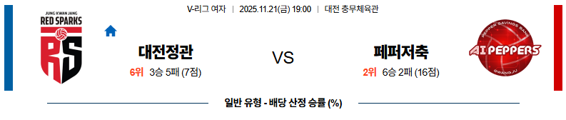 11월21일 정관장:페퍼저축은행 V리그(여) 분석 및 예측 스포츠중계:스포츠무료중계