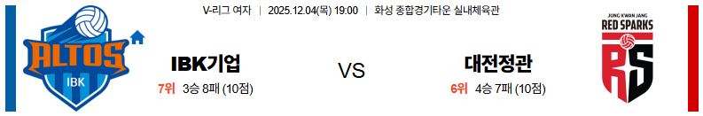 IBK기업은행 대 정관장 V리그(여) 12월04일 맞대결 생중계, 스포츠중계, 스포츠분석