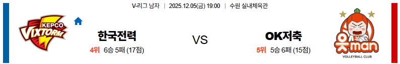 한국전력 대 OK저축은행 V리그 12월05일 맞대결 생중계, 스포츠중계, 스포츠분석