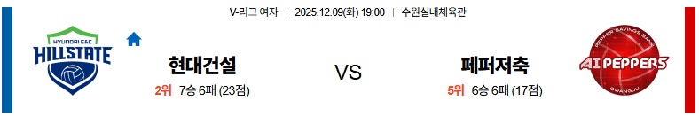 현대건설 대 페퍼저축은행 V리그(여) 12월09일 맞대결 생중계, 스포츠중계, 스포츠분석