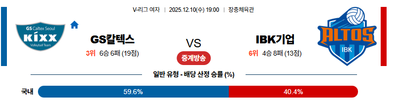 GS칼텍스 대 IBK기업은행 V리그(여) 12월10일 맞대결 생중계, 스포츠중계, 스포츠분석