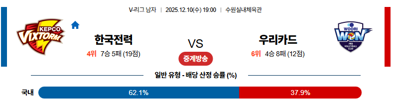 한국전력 대 우리카드 V리그 12월10일 맞대결 생중계, 스포츠중계, 스포츠분석