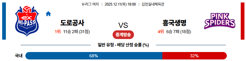 한국도로공사 대 흥국생명 V리그(여) 12월11일 맞대결 생중계, 스포츠중계, 스포츠분석
