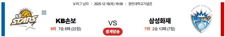 12월18일 KB손해보험:삼성화재 V리그 분석 및 예측 스포츠중계:스포츠무료중계