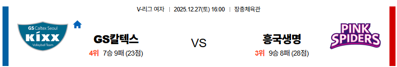12월27일 GS칼텍스:흥국생명 V리그(여) 분석 및 예측 스포츠중계:스포츠무료중계